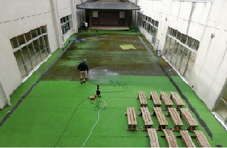 子どもたちの最高の笑顔を,美しい「光の庭」で撮影させたい…と,校長先生と事務長先生が清掃活動に取り組んでいます。現在,本番に間に合うよう急ピッチで進んでいます。