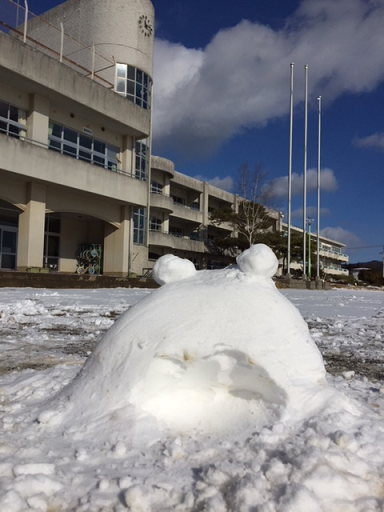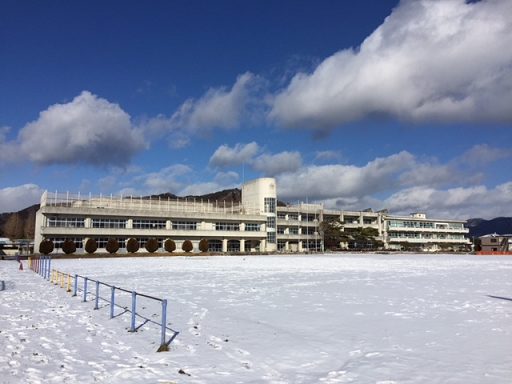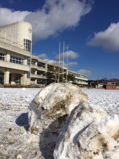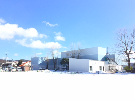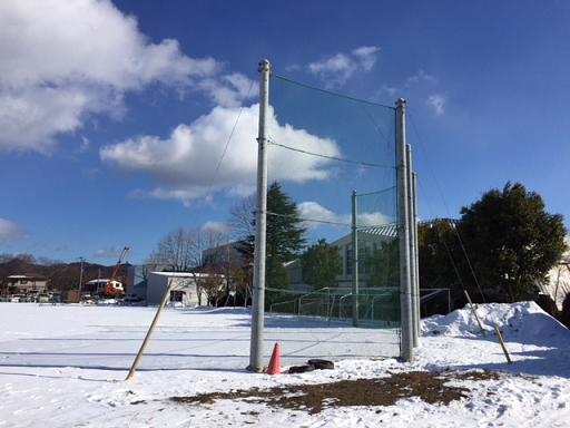 気仙沼市図書館の工事も進み,その美しい姿が見えるようになりました。校庭の図書館側にあったバックネットも,校庭南西側・気仙沼中学校側に移設されました。