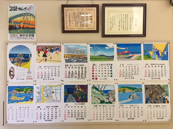 今年のカレンダーの表紙は,大島架橋の架設の様子です。どの月もすてきな作品で彩られています。