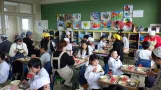 11月12日(火)に、2年生のPTA親子行事が行われました。4校時に気仙沼中央給食センターの岩渕先生に食育についての講和をしていただき、その後、各教室で給食試食会を行いました。保護者と一緒に、会話を楽しみながら美味しく給食を食べている様子でした。