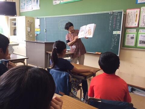 1年生は1・2組全員が車座になって,「やさしいライオン」の朗読に真剣に聞き入っていました。「アンパンマン」で有名なやなせたかしさんの「やさしいライオン」は,とても切ない話ですが,大切な人の絆を考えさせられるものです。辛い経験をして,痛みを知ることで,優しい心が生まれるとも言われますが,心に痛みを感じる物語は,子どもたちの心の中に優しさを育んでくれるのかも知れません。