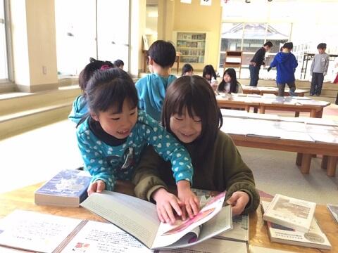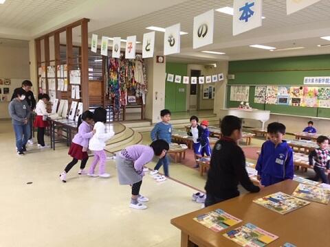 61の国,50言語の世界の子どもの本,約200冊を展示しています。休み時間には子どもたちが手にとって本を見ています。文字は読めなくても,絵や本から様々なことを感じ取っているようです。