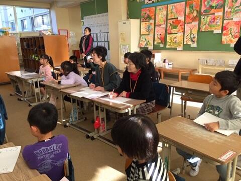 1年生の教室では,いつもと様子が違い,1年生の子どもたちが「あいの会」の皆さんに国語科の学習で学んできた「お気に入りの本の紹介」を行いました。「逆?読み聞かせ」です。1年生の子どもたちにとっては,いつも読み聞かせをしてくださっている方に発表をするよい機会をいただきました。「あいの会」の皆さんにコメントをいただき,子どもたちもうれしそうでした。ありがとうございました。