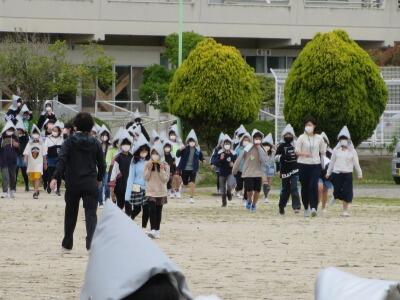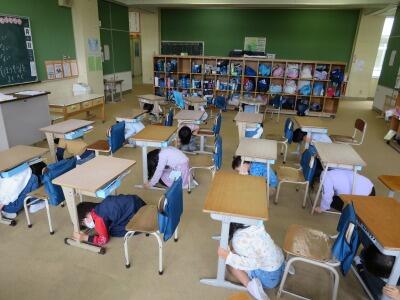 6月10日は,学校行事として地震・津波を想定した避難訓練を実施しました。業前には,学級ごとに防災タイムとして災害の種類や怖さ,避難の仕方について学習しました。避難訓練では,地震が発生したと同時に校内放送が流れ,児童は机の下に一時避難しました。その後,余震の恐れがあるとして,校庭へ避難しました。教頭先生の講評では,「命を守るためによく考えて判断し,判断に基づいた行動力を身に付けることが大切です。」と,児童に伝えられました。終了後は,学級ごとに,訓練の様子を振り返りました。児童は,命を守る大切さを改めて実感したようです。