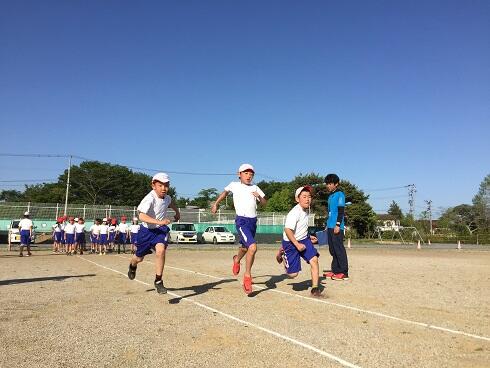 自分の記録の更新を目指し,陸上競技,運動の楽しさを味わいながら練習しています。