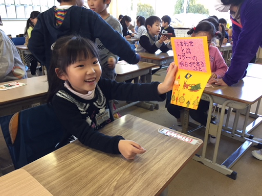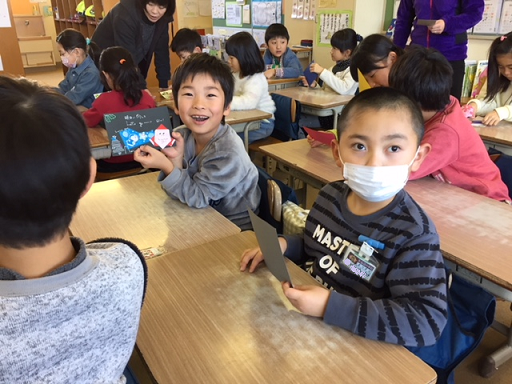 1年生の子どもたちも一人一人にクリスマスカードをいただき,笑顔いっぱいでした。