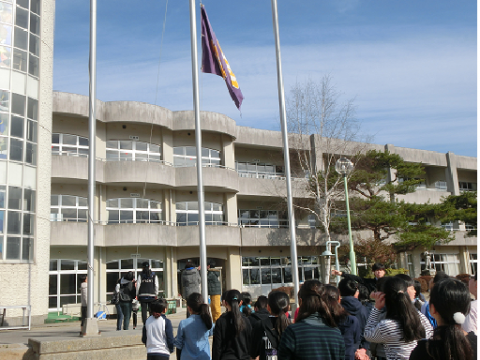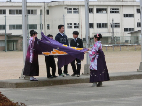 当日の朝,卒業生は,最後の校旗掲揚をし,晴れやかに巣立っていきました。