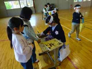 11月26日(火)に、葦の目幼稚園の年長児が来校し、1年生と体育館でなかよし祭りを行いました。