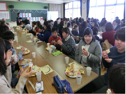 子どもたち手作りのサンドイッチやポテトサラダを食べながら,家族とともに,6年間の成長や思い出を振り返りました。