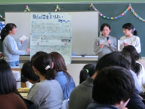 また,総合的な学習「わたしたちのまち未来の気仙沼」の発表や,支援をいただいている萩市立福栄小中学校へのビデオレター上映等,子どもたちの学習の成果も見ていただきました。