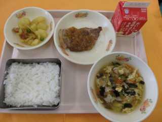 ぶたにくのキムチいため,しおワンタンスープ,牛乳