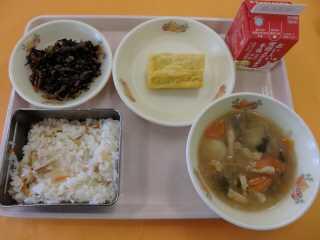 わかめごはん,ミルメーク(ココア),あつやきたまご