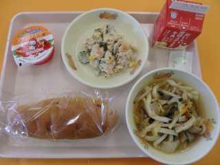バターロールパン,ブロッコリーサラダ,ソースやきそば