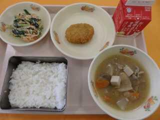 ごはん,いわしのうめに,ちくぜんに,たまねぎのみそしる