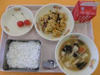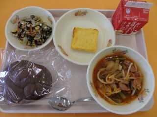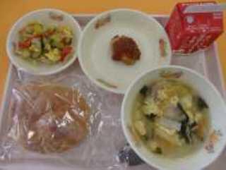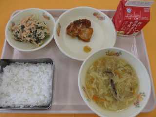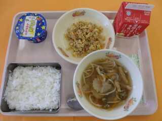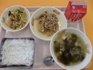 ぶたにくのキムチいため,しおワンタンスープ,牛乳