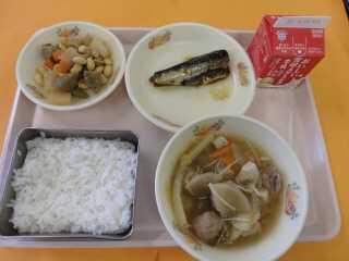 ごはん,さんまのしょうがに,だいずとひじきのサラダ
