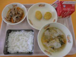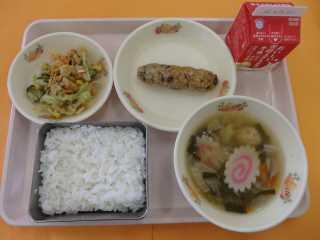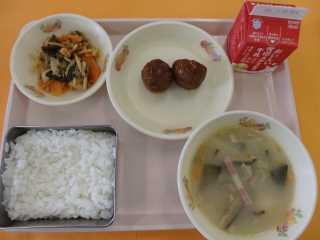 ごはん,にくだんご(2こ),ちゃんぽんスープ
