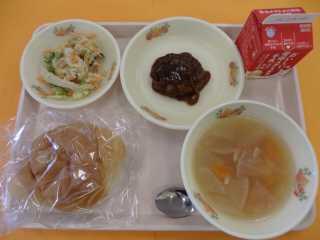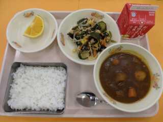 ごはん,かみかみサラダ,チキンカレー,れいとうもも