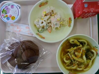 ココアパン 牛乳 れんこんサラダ にこみうどん ぶどうゼリー
