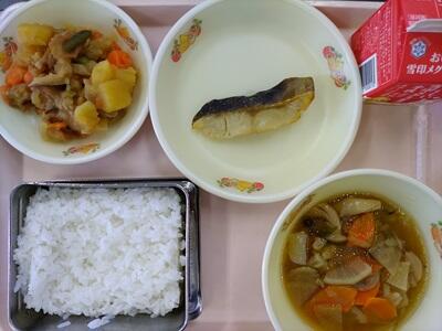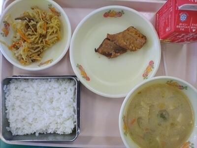 ごはん 牛乳 さわらのさいきょうやき ごもくまめ とんじる