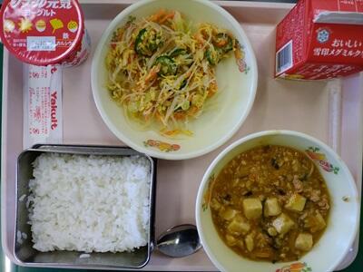 ごはん 牛乳 バンバンジーサラダ マーボーどうふ ヨーグルト