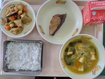 ごはん 牛乳 ぶりのてりやき ごもくまめ こまつなのみそしる