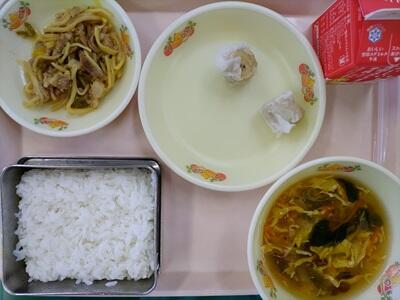 ごはん 牛乳 しゅうまい(2こ) チンジャオロースー えびとたまごのちゅうかスープ