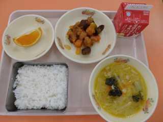 ごはん,すぶた,ぱいたんスープ,デコポン,牛乳