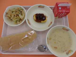 ココアパン,はなやさいサラダ,クリームスープスパゲッティ