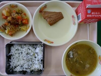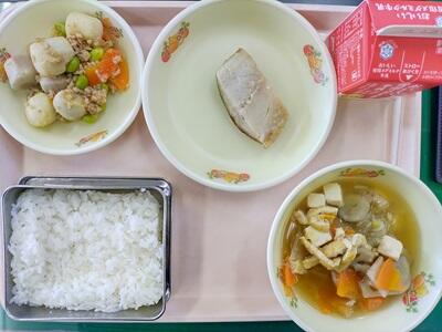 ごはん 牛乳 さわらのさいきょうやき さといものそぼろに ぐだくさんけんちんじる