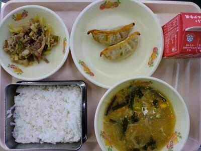 ごはん 牛乳 やきぎょうざ(2ヶ) チンジャオロースー たんたんはるさめスープ