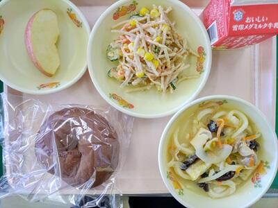 ココアパン 牛乳 ごぼうサラダ ちゃんぽんうどん りんご