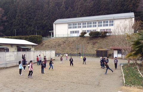 また、昼休みには1年生~6年生が一緒に、校庭でドッジボールをして楽しんでいました。