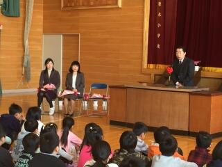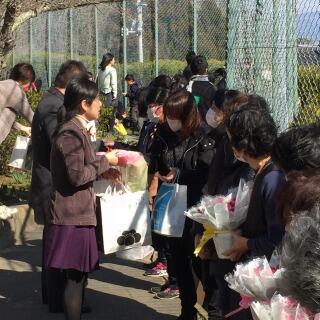 柔らかな春の日差しの中,このたびの人事異動で5名の先生方が変わられました。