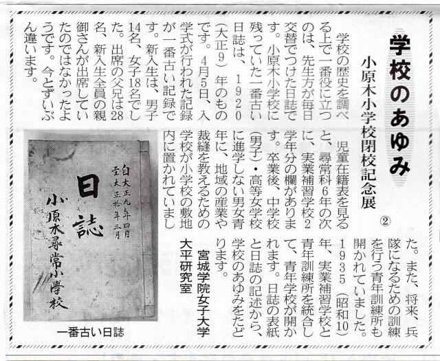小原木小学校閉校記念展の紹介シリーズ第6弾が,三陸新報社様の記事に掲載されました。