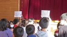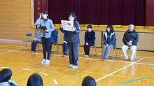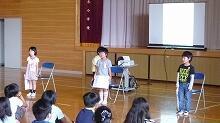初めての全校の前での発表でしたが,3人ともしっかり口を開けて,大きな声でした。