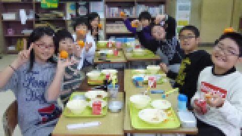 また,給食の時には,同じく上内小学校の岩間校長先生が送ってくださったみかんをいただきました。とっても甘くて,おいしいみかんなのでみんな笑顔でいただきました。
