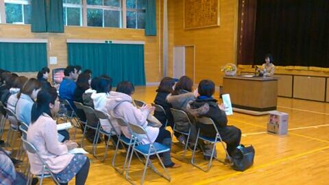 また、5校時には、各学級での授業参観を実施し、続いて体育館において教育研修会を行いました。講師は、震災後に継続して三重県からの支援で来校してくださっているスクールカウンセラーの山田先生でした。これまでのカウンセリングの概要や,子どもたちの心を支えるために気をつけてほしいこと、そして保護者の皆さん自身の心の健康を保つ方法などについてのお話をいただきました。