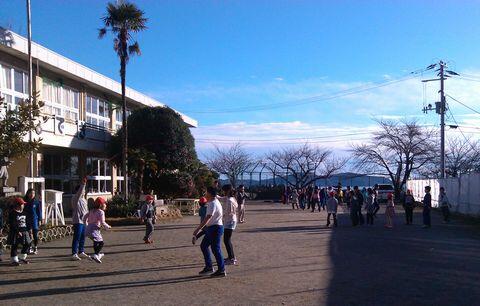 今朝の業前活動は,たて割班の長縄跳びでした。寒さに負けずに,全校が校庭に出て運動しました。全部で3回のチャレンジがあり,各班の目標に向かって8の字連続跳びをしました。