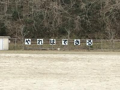 小原木小学校の校舎2階に掲げられ,子どもたちの合い言葉として見守ってきた『やればできる』のプレートが,子どもたちより一足早く唐桑小学校に設置されました。