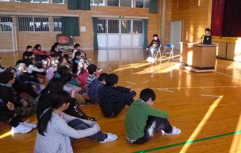 また、冬休みの「あ・い・う」で、(あ):安全にすごしてほしいこと (い):いい行いをたくさんしてほしい (う):運動をして体の健康を増進してほしい ということも確認しました。 2学期にがんばったことや3学期の目標の児童代表の発表では、3年生代表のJ君と6年生のK君がしっかりと発表できました。