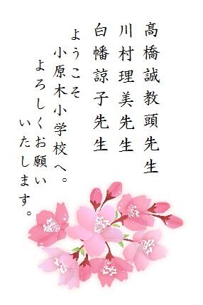 引き続いて行われた始業式では,菅原校長先生から新年度にあたってめあてをもつこと,心と体をきたえていってほしいとお話がありました。披露式では新しく小原木小の一員となった2名の児童と,4名の先生方との初顔合わせです。