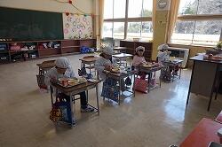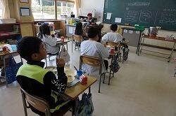 久しぶりの給食を,子どもたちは喜んで食べていました。