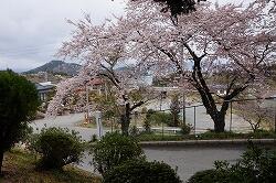 風が冷たく肌寒い日ですが,校庭の桜は見事に花を咲かせています。