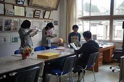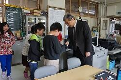 子どもたちから「この機械は何に使うの?」「金庫には何が入っているの?」と次々に質問が飛びだし,校長先生や学校嘱託員の玉川さんがひとつひとつ答えてくれました。