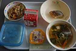 メニューは豚肉の生姜焼き,きゅうりの酢の物,油麩の味噌汁でした。