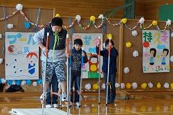 朝会の後には,5・6年生がすすんで体育館の片付けをしてくれました。
