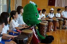 また,3校時目は菊本るり子先生のご指導でドラムサークルを全校で実施しました。いろいろな太鼓をみんなで叩いて大盛り上がり!!