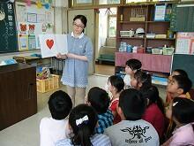 2校時,1~3年生はお話会を開催しました。気仙沼市図書館の方がいらして読み聞かせをしていただきました。目を輝かせて聞き入っていました。