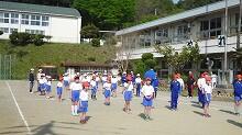 第1回目の今日は校庭で整列や行進の練習をしました。1~3年生は旧中学校グランドでも練習を始めました。